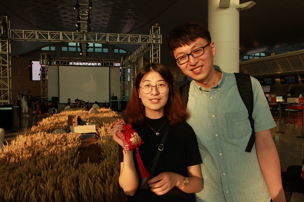 6月15日,“邂逅·浙江非遺藝術”之“邂逅浪漫空港,遇見非遺端午”活動在T3航站樓出發層舉行。在雅致的現場古琴演奏下,旅客們穿梭在翻滾涌動的金色麥浪中,休憩在蒲團上觀看非遺文化紀錄片,欣賞粽子、香囊等別致的端午文創作品。