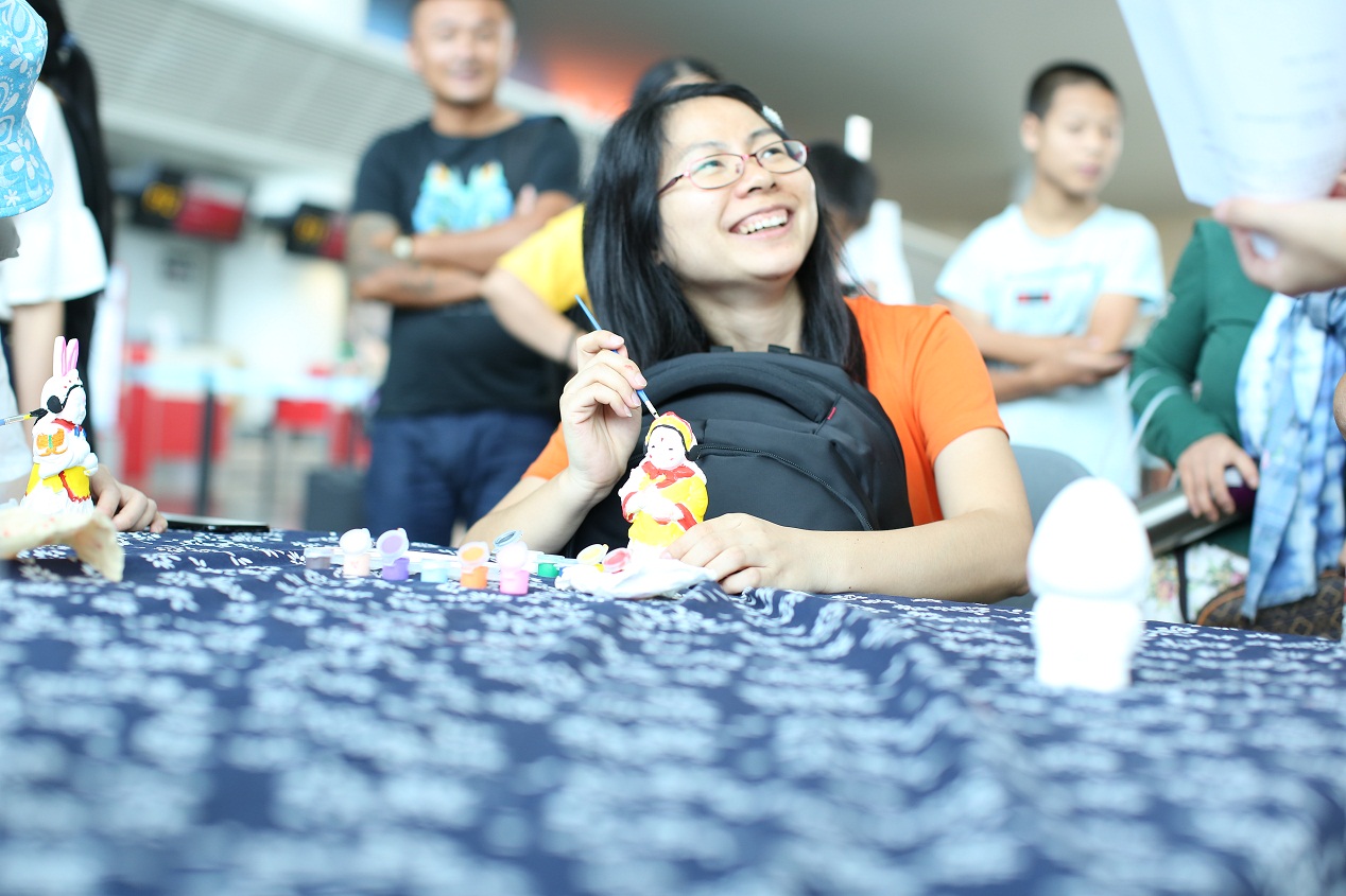 9月13日上午,在T1航站樓9號門旁開展了“情系空港,愛滿中秋”文化活動。活動圍繞嫦娥奔月、月圓團聚等中秋文化元素,以回歸傳統、弘揚民俗為立足點,為旅客呈現了精彩的中秋歌舞表演,并與旅客進行了“彩繪月兔”、“猜燈謎”等互動活動。航站樓內洋溢著傳統節慶氛圍,為旅客的中秋旅途增加了濃厚的文化體驗。