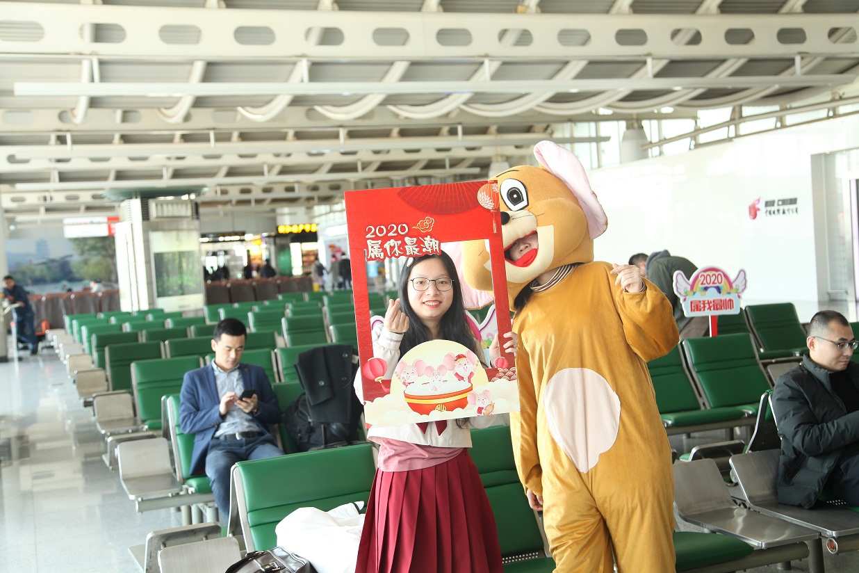 1月1日,乘坐CA4520前往成都的157名旅客成為了航站區中心“錦鯉航班”活動的幸運錦鯉,并獲得了一份特別的新年驚喜禮物,同時此趟航班的謝女士作為“霸王錦鯉”享受了貴賓休息服務。“錦鯉航班”活動自2019年推出以來,獲得旅客好評不斷,進一步滿足了旅客美好出行、愉悅出行的需求,踐行“人文機場”建設理念,也拉開了2020年“人文航站樓”的序幕。