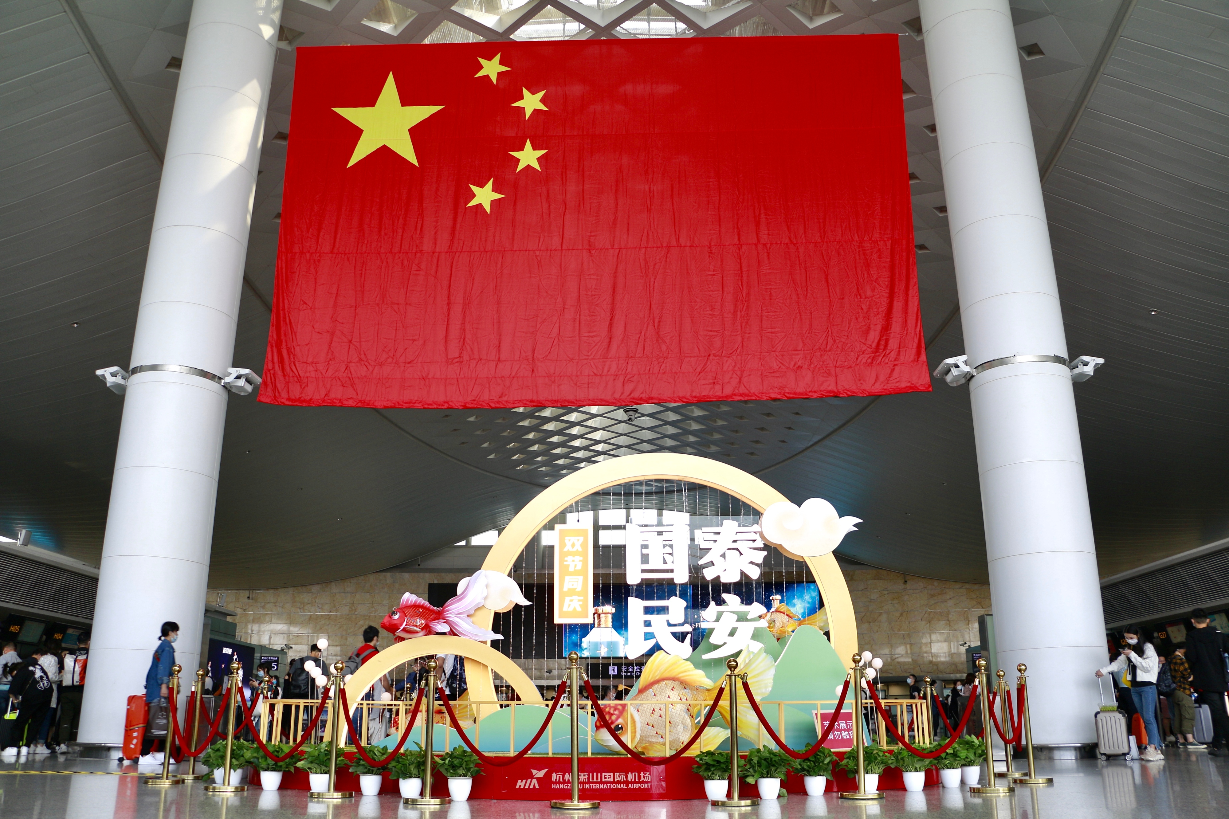 為進一步營造國慶、中秋兩大佳節的航站樓文化氛圍,杭州機場航站樓內開展了靜態景觀布展結合動態互動體驗的迎雙節文化活動。