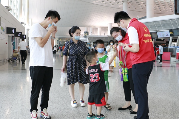 6月14日端午節,航站區中心“黨員初心站”在T3航站樓開展“香守初心 端陽傳情”節慶活動?;顒蝇F場,黨員初心站的志愿者向旅客贈送了精美香囊,傳遞端午祝福,宣揚民俗文化的獨特魅力。旅客紛紛表示,在端午節收到這樣一份禮物,不僅加深了對傳統節日民俗禮儀的了解,更對杭州機場的出行關懷有了更深印象。