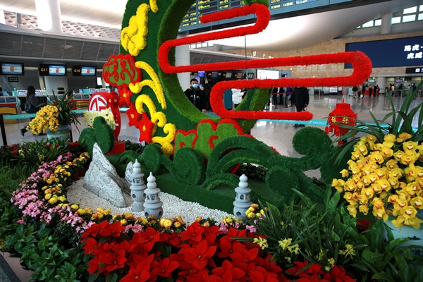 此外,為營造新春節日氛圍,航站區中心在出發大廳G值機島設置了虎年新春主題景觀,并結合杭州地域文化特色、亞運主題元素,在7號門、11號門等區域用綠化景觀打造“三潭映月”及亞運主題特色景觀,旅客紛紛打卡留念。